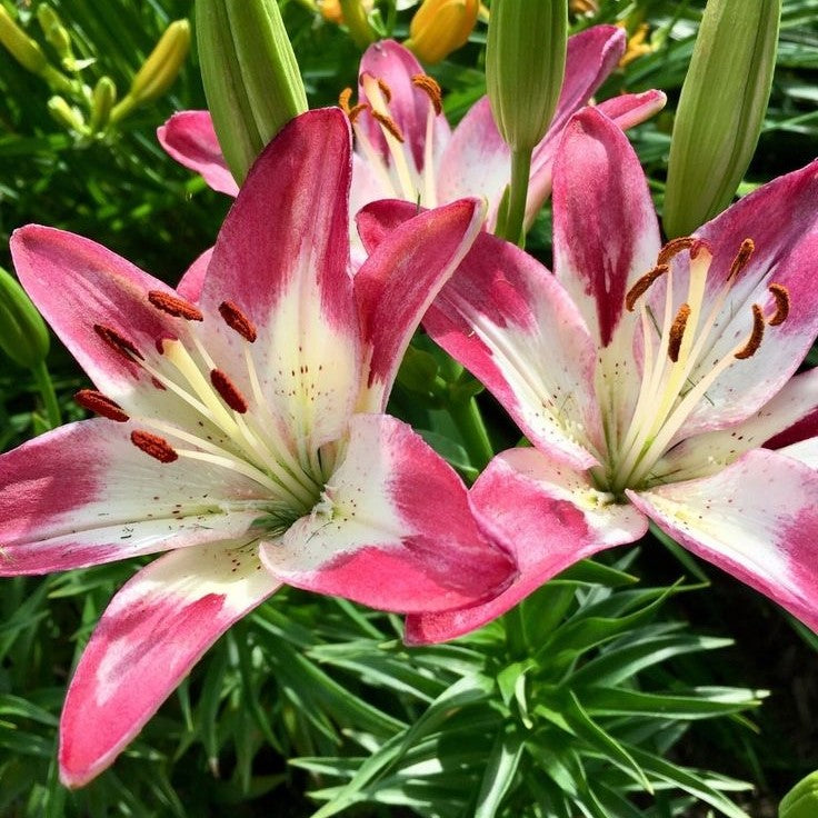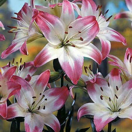 Crinul Lollypop impresionează prin petalele sale albe cu margini roz intens, creând un contrast spectaculos. Este ideal pentru grădini elegante și buchete deosebite.