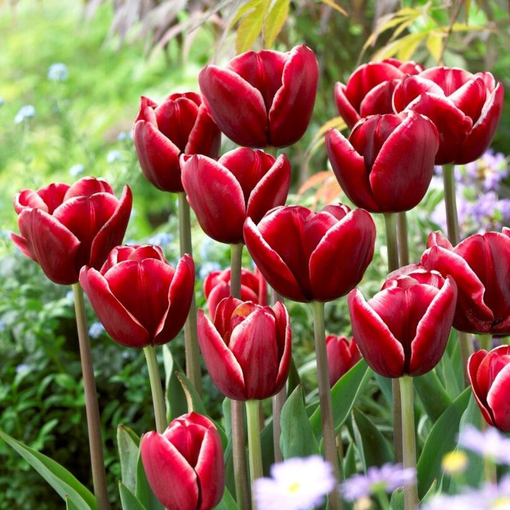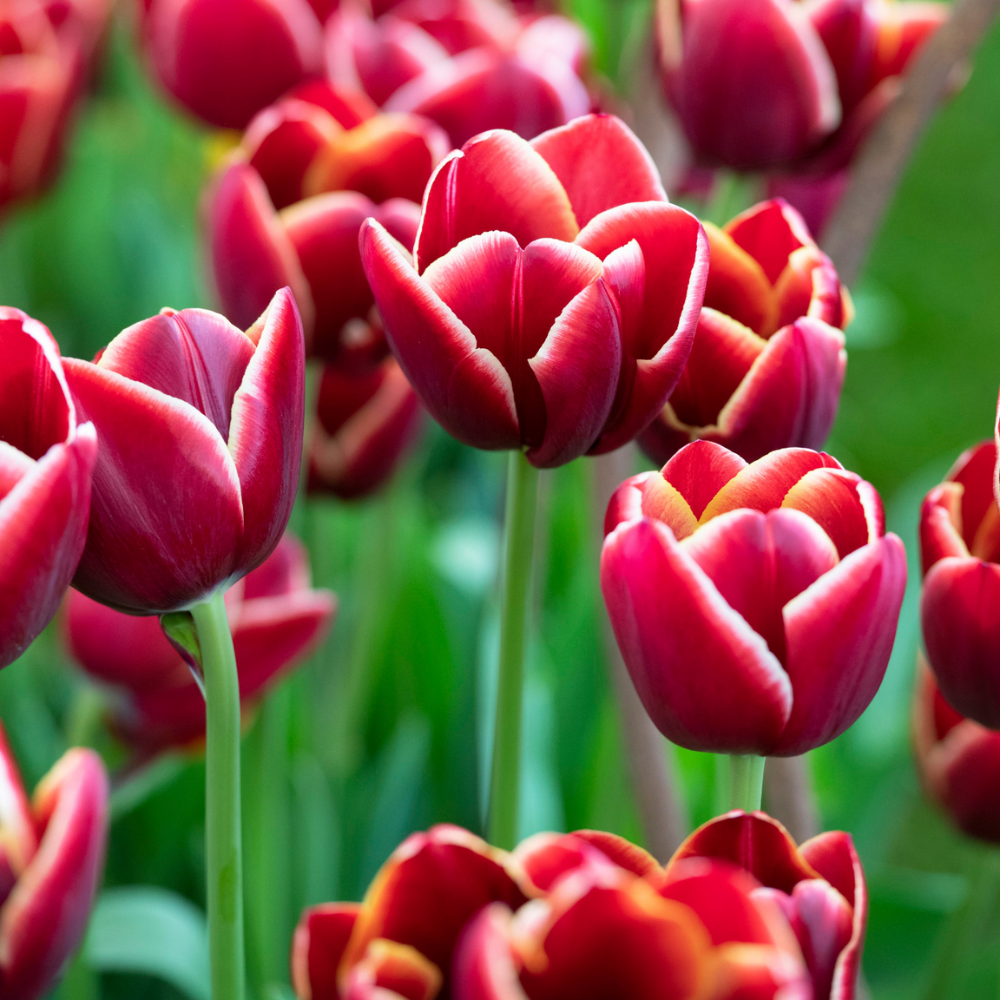 Adaugă un strop de culoare și rafinament grădinii tale cu lalelele Armani și bucură-te de un spectacol de flori roșii cu margini albe în fiecare primăvară.