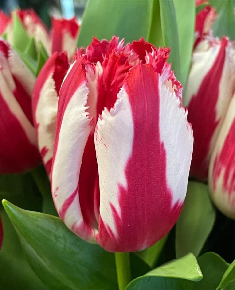 • Culoare flori: Roșu cu striații albe