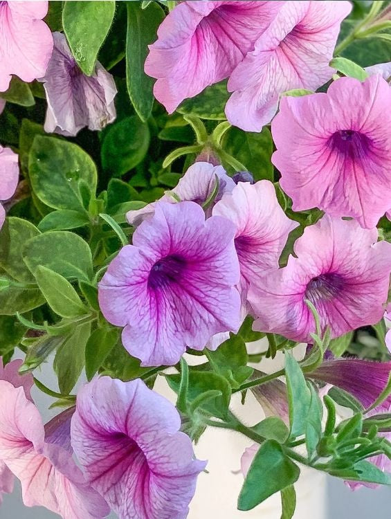 Petuniile sunt flori clasice si foarte populare pentru terase si balcoane, oferind o varietate de culori intense si o înflorire continua. Aceste flori rezistente aduc un strop de veselie si prospetime, fiind ideale pentru ghivece, jardiniere si aranjamente suspendate.