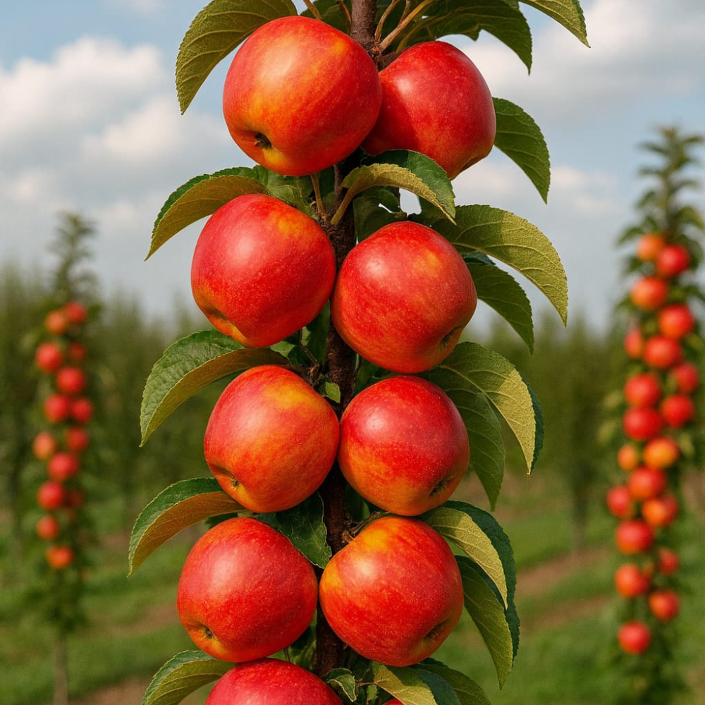Mărul Columnar Fire Glow este alegerea ideală pentru grădinarii care doresc un pom productiv, compact și extrem de decorativ. Se potrivește excelent în livezi intensive, grădini urbane și ghivece mari pe terase.