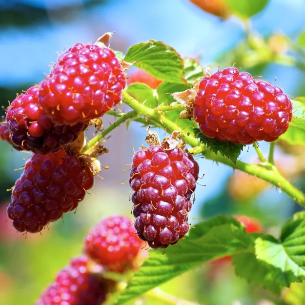 +40 741 816 773Zmeur-Mur Tayberry – Rădăcină ambalată este un hibrid natural între zmeur și mur, apreciat pentru fructele sale foarte mari, alungite, de culoare roșu-vișiniu intens și pentru aroma deosebită, dulce cu o ușoară notă acidulată. Planta are o creștere viguroasă și formează lăstari lungi, flexibili, care pot fi conduși pe spalier sau pergolă. Este ideală pentru grădini familiale, producând recolte timpurii și abundente de fructe aromate, excelente atât pentru consum proaspăt, cât și pentru deserturi, gemuri sau sucuri.