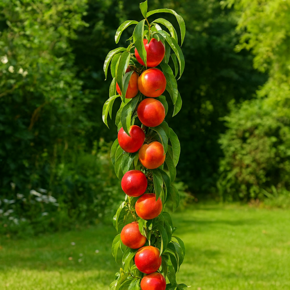 Nectarinul columnar Fantasy este alegerea ideală pentru cei care își doresc o combinație între aspect ornamental și producție bogată de fructe delicioase. Fie că îl plantezi în grădină sau într-un ghiveci mare pe terasă, el va aduce o notă rafinată și naturală oricărui spațiu verde.