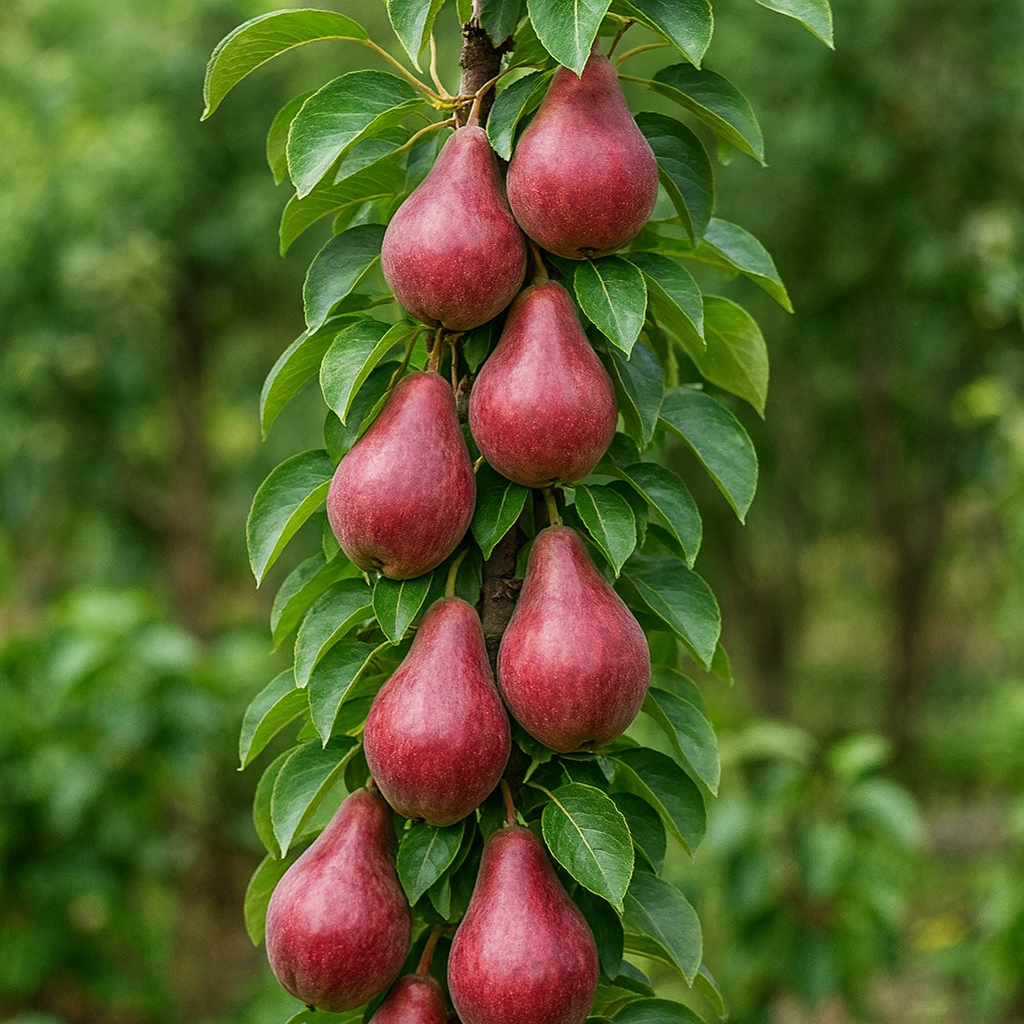 • Soi: Pere roșii cu creștere columnară, ideal pentru spații restrânse și grădini moderne.