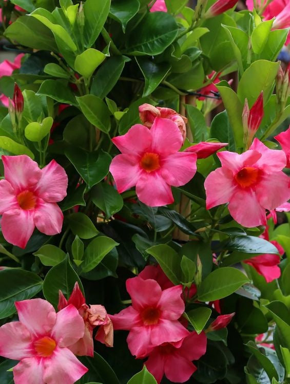 Dipladenia este o planta cataratoare, cu flori exotice, de un roz intens sau alb, care aduce un aer tropical în gradina sau pe terasa. Este perfecta pentru a acoperi suporturi, garduri sau pergole, oferind un spectacol de culoare si parfum pe tot parcursul verii.
