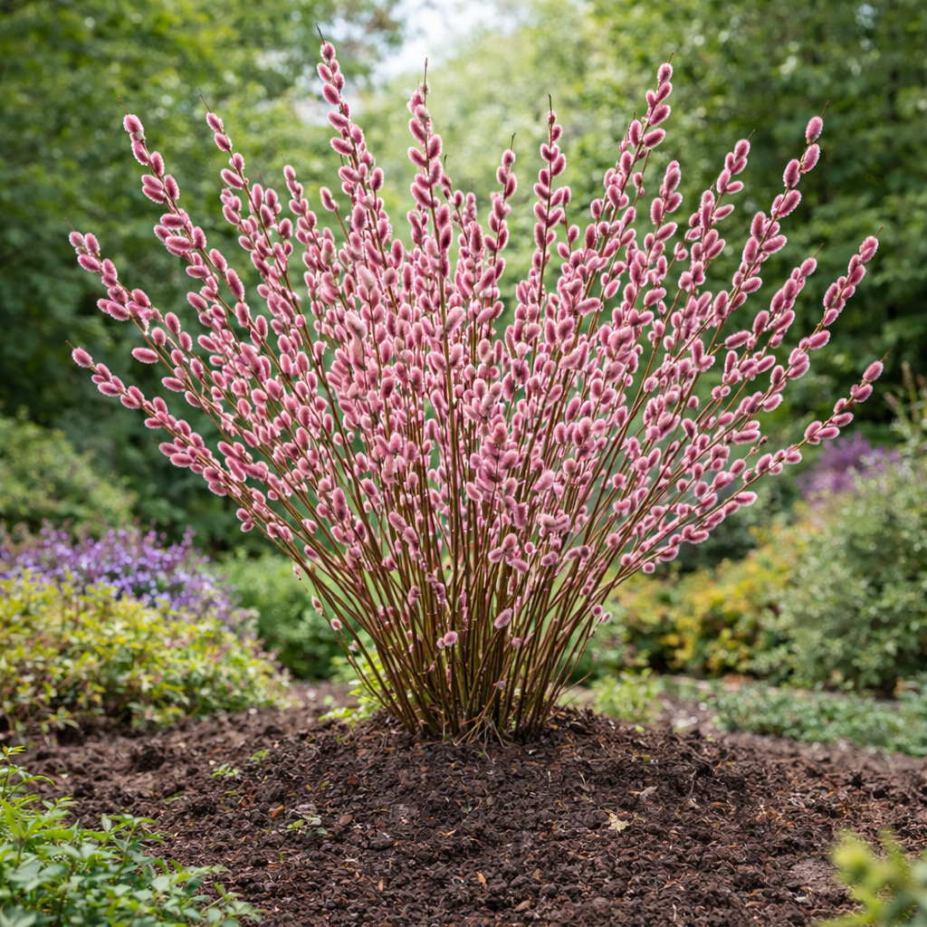 +40 741 816 773Salcie Roz – Salcie Mount Aso – Ghiveci este un arbore ornamental spectaculos, apreciat pentru mâțișorii săi roz intens, catifelați, care apar primăvara devreme și oferă un adevărat show de culoare atunci când grădina abia se trezește la viață. Cu un aspect delicat, modern și extrem de decorativ, această salcie este ideală pentru grădini, terase, spații verzi sau ca plantă accent în ghiveci.