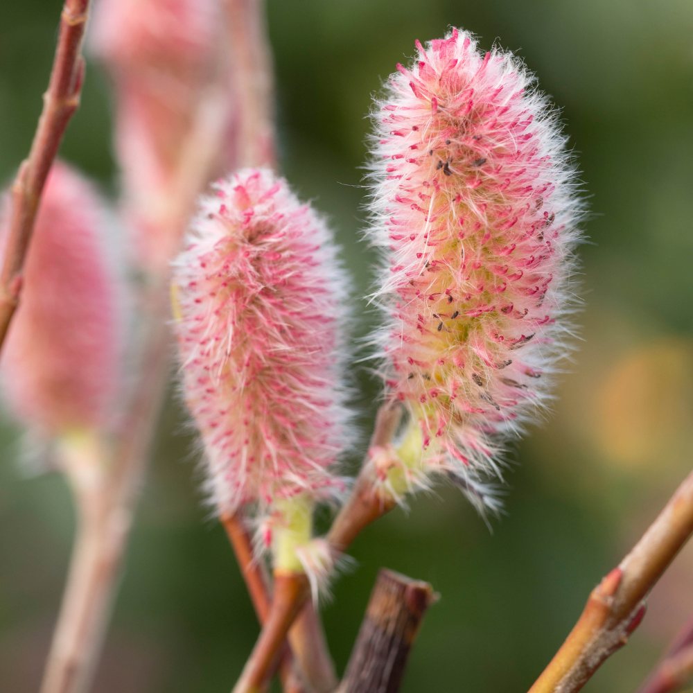 • Înflorire: Primăvara devreme (mâțișori roz decorativi)